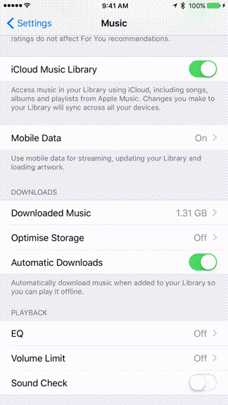 To make music management easier, there’s an Optimize Downloads option in Settings -> Music. From here you can select how much storage you want the downloaded music to take. When it goes over the limit, the app automatically starts deleting older songs and songs you don’t listen to.