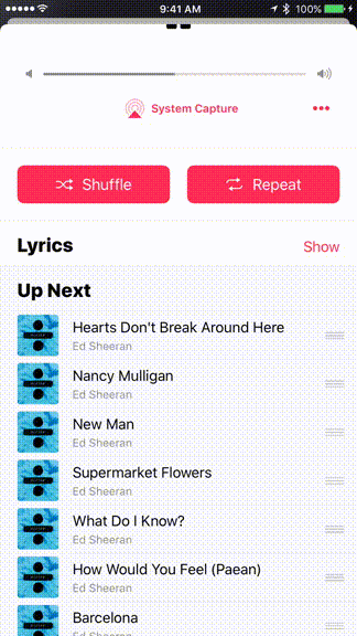 There’s also no dedicated page for Up Next queue. From the Now Playing screen swipe up till you see the the Up Next section. To remove a song, swipe left and tap on Remove.