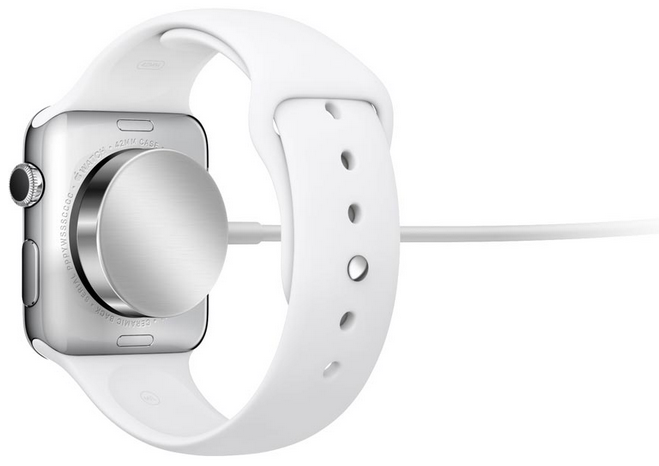 Apple opted to use its MagSafe technology with the Watch, allowing users to plug and unplug the device with ease. The magnetic charger will snap into place automatically when the connector is held near to the back of the watch. The system is so refined that customers can even charge the device without looking at it – everything will just snap into place as long as you are close enough in your alignment. The charging system also is inductive, which means there are no exposed contacts that you need to keep free of dust, dirt or grime.