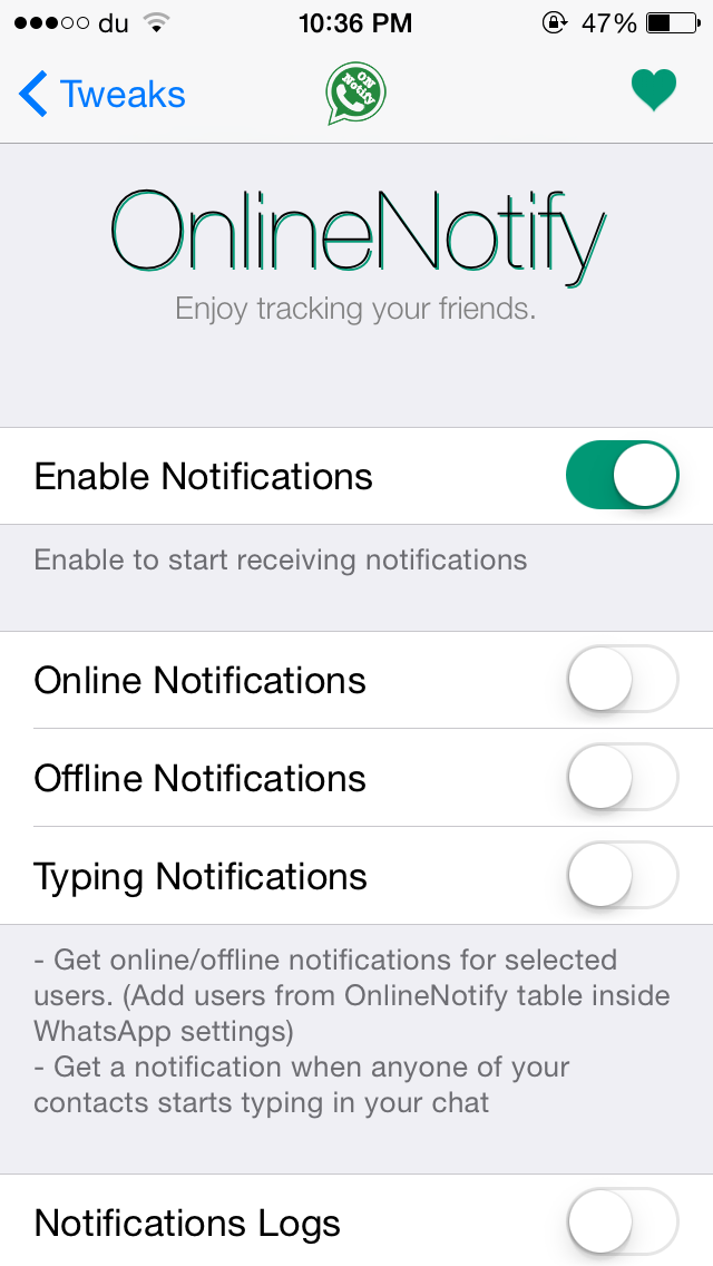The tweak allows you to keep track of your selected friends by notifying you whenever they go online or offline. It works both when your device is locked or unlocked and when you’re inside WhatsApp. In addition to this, the tweak provides the following features features as well: