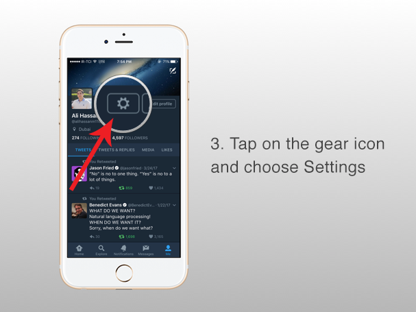 Step 3: Tap on the gear icon and choose Settings.