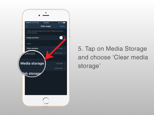 Step 6: Open Media storage and tap on the Clear media storage button to remove the cached photo, GIF, and Vine data.