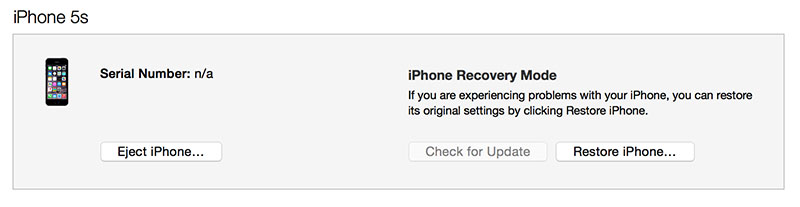 - Release the power button and continue holding the home button until you get a popup from iTunes that it has detected that your device is in Recovery mode.