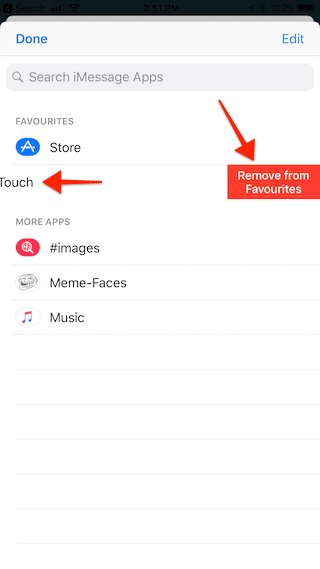 To remove an app from Favorites, swipe left on the app name and select Remove from Favorites.