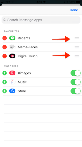 Step 3: In the Favorites section, you’ll now see that each app title has a handle icon in the far right corner. Tap and hold on the handle and swipe up or down to move it. Release your finger to dock the app in position.