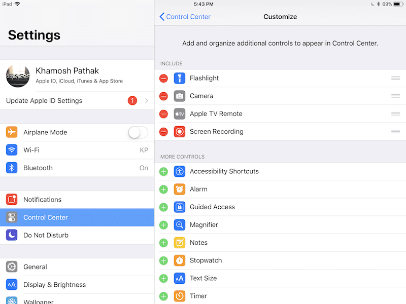 Step 1: Open Settings app and go to Control Center -> Customize Controls.