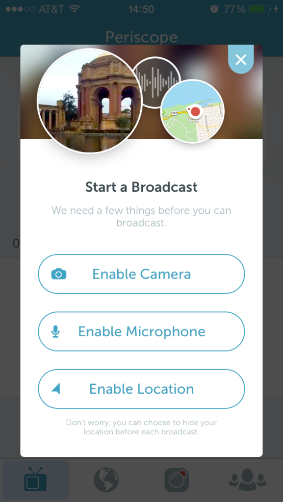 Now that we know the basic ins-and-outs of the Periscope app, let’s take a look at how you can create your first broadcast.