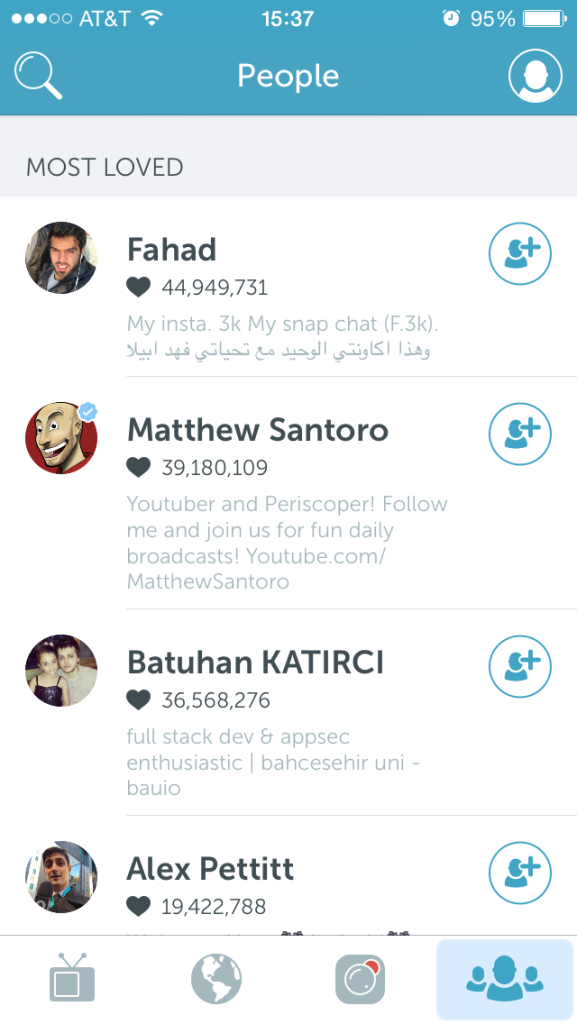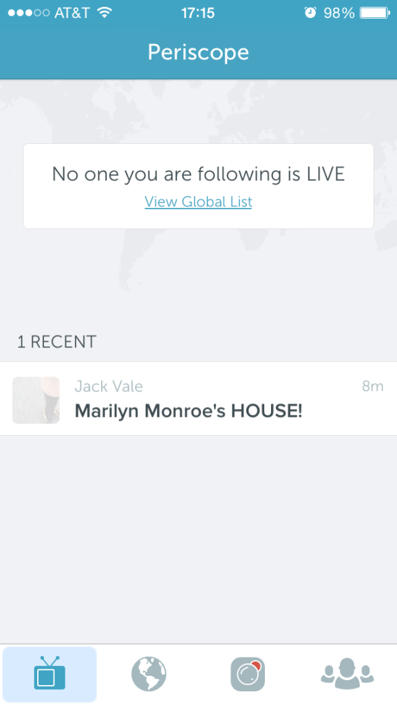 Like any good social application, we don’t really have to do anything ourselves to use the app. Voyeurism at its best. We can enjoy and follow other people’s public Periscope accounts. As you would with Instagram or Twitter, you can use the search option find cool feeds to follow or search for friends or well-known accounts. Once you have found a few interesting accounts you can view their recent Periscopes by tapping on the TV icon.