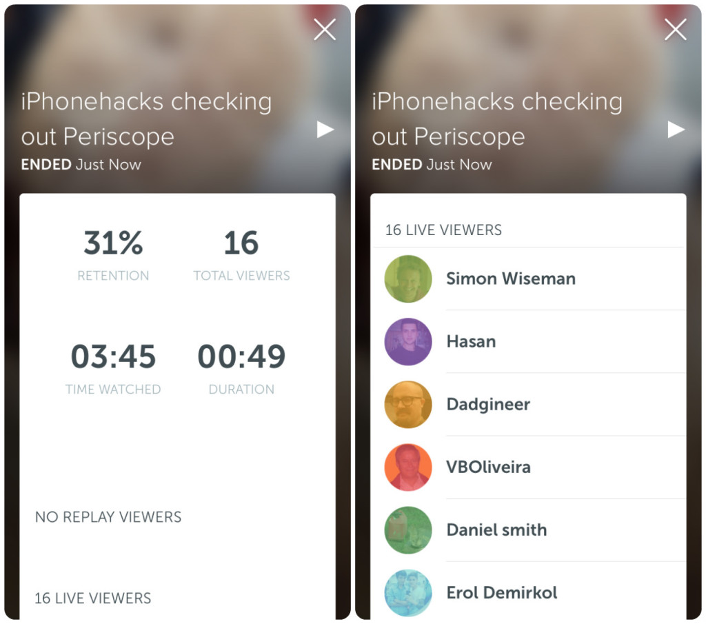 When you have finished the broadcast, it will automatically upload so that you and other viewers can replay it. You can cancel and upload by tapping the progress bar before. You will also see the stats from your Periscope session. The total number of viewers, the aggregate time watched, as well as the retention rate. These are insights extremely helpful for marketing companies and brands that are trying out the new application.