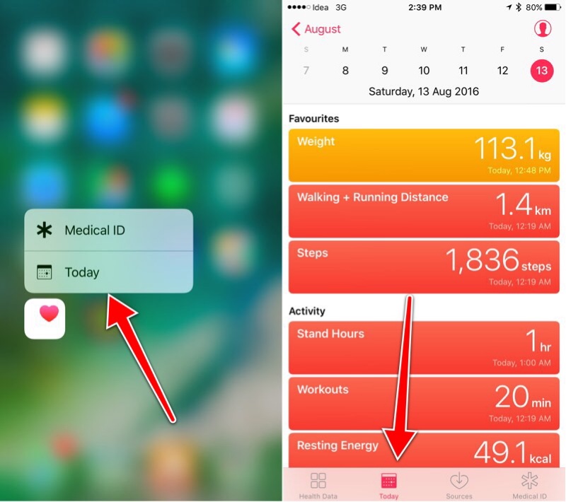 There’s a new Today view in the Health app (there’s also a 3D Touch shortcut for it) and it makes the app much better, at least for me. The Today view shows all the info for the day – in one screen. Things like how much you walked, the stairs you climbed, your heart rate or BP and your weight (if you logged them).