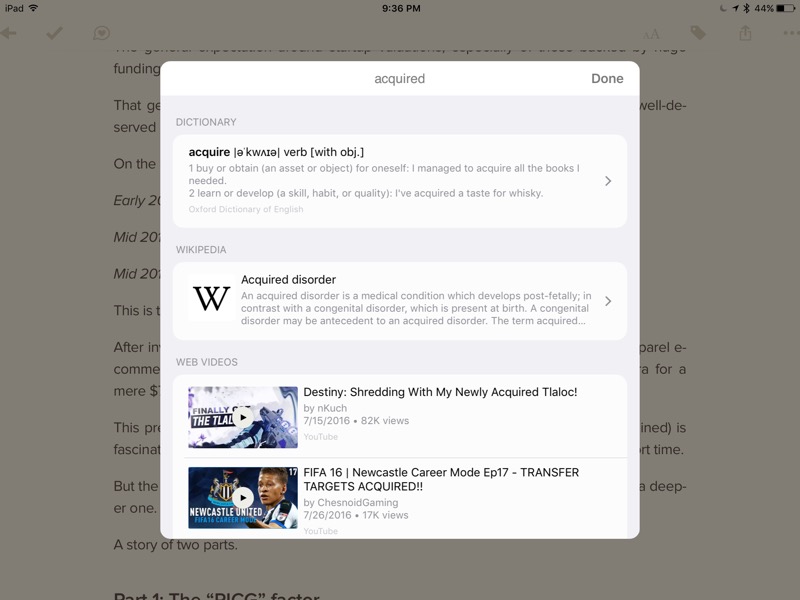 Define option in the text selection menu has been replaced by Look Up. And Look Up does a bit more. Along with definitions, you’ll also see links to Wikipedia page along with web videos. This makes researching stuff much easier.