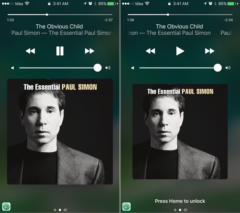 The Now Playing view in the Lock screen is now much bigger. The buttons are now a lot more tappable and the volume scroller is easier to hit. Also when you play or pause, the album art animates to get bigger or smaller.