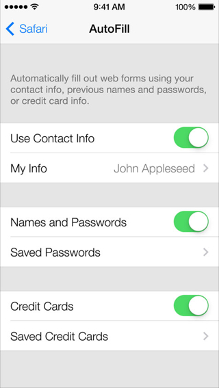 - Safari in iOS 7 also comes with support for iCloud Keychain feature, which remembers your account names, passwords, and credit card numbers. Safari will enter them automatically when you sign in to a site or shop online.