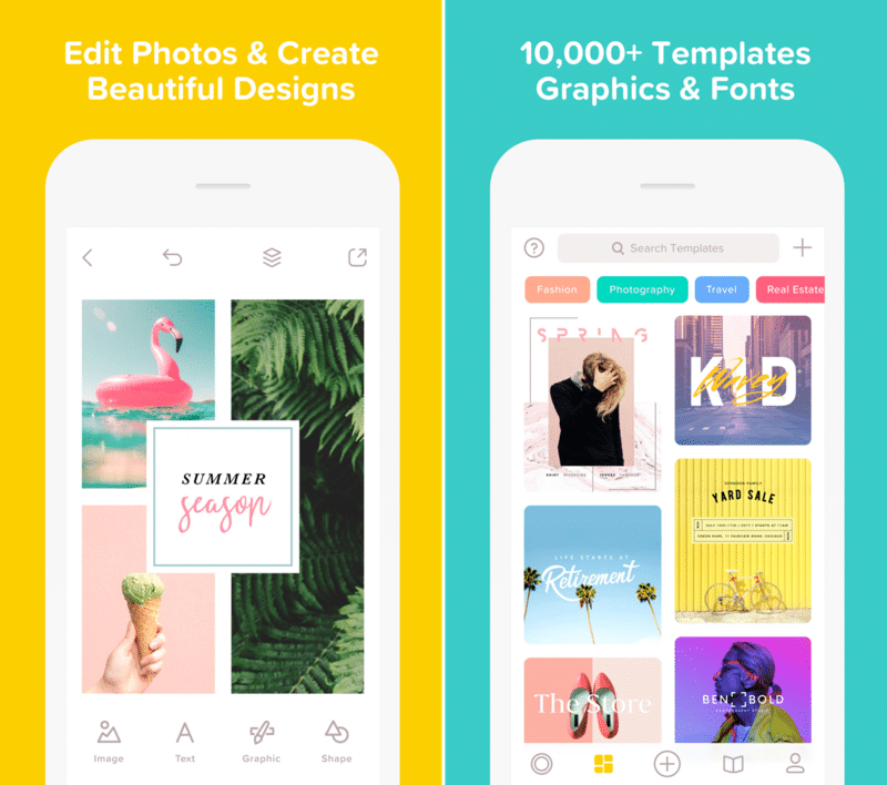 It features over 60000 templates for you to choose from. With a variety of designs, fonts, photo editing features and over 1 million stock photos to choose from the library.