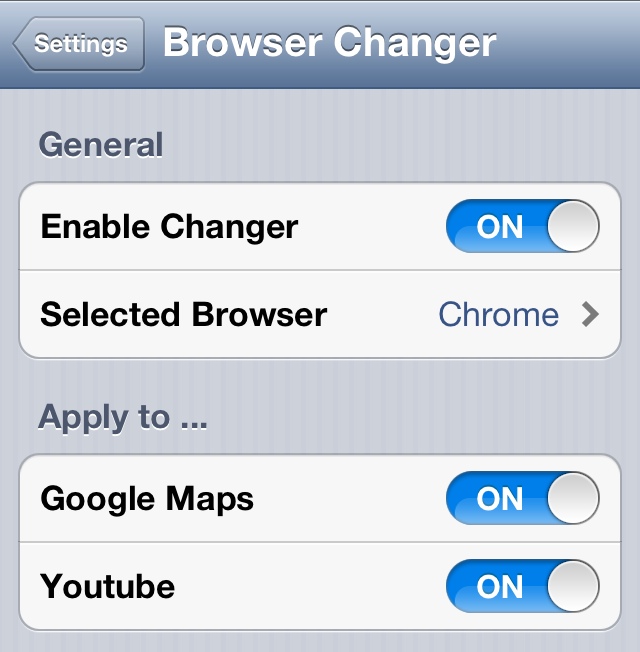 Another jailbreak tweak that allows you to change the default browser and more is jailbreak tweak Browser Changer, which we have covered earlier.