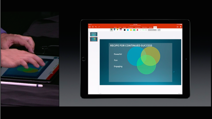 Because the iPad Pro’s display measures 12.9 inches, you’ll need an Office 365 subscription if you want to do more than just view Office documents. However, Microsoft hasn’t quite worked out how it’s going to implement this on iOS just yet.