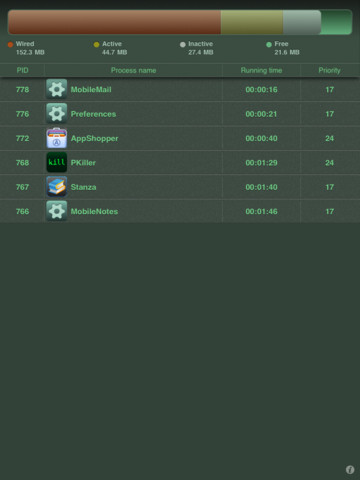 Application shows you background processes and memory consumption.The app “kills” with it’s simplicity!