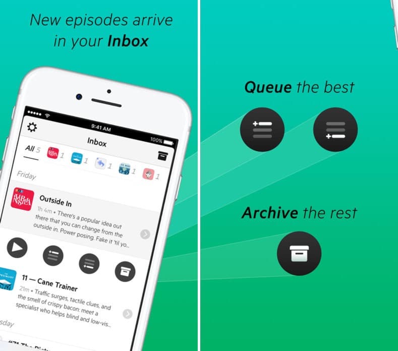 It’s now your job to decide what to do with it. Add it the queue or archive it. The app does make things easier for you by letting you automatically add new episodes from a given podcast to the queue.