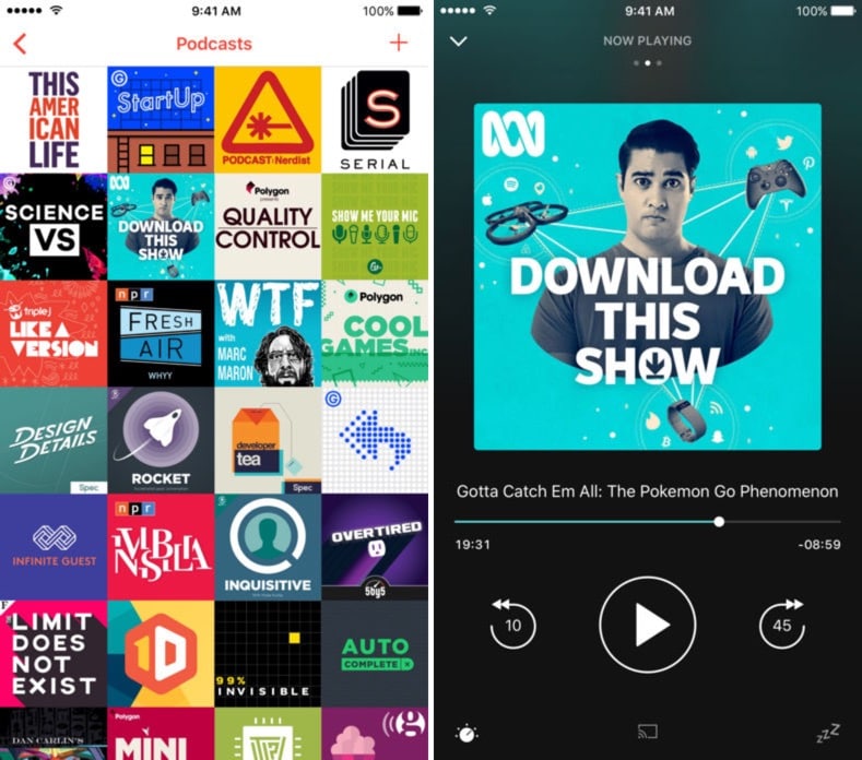 The main difference here is that Pocket Casts is a paid (and ad free app). It costs $3.99 on the App Store. You also get access to the Apple Watch app. Pocket Casts also has a great (fully featured) web client. If you want a consistent podcast experience across iOS, Android and the Web, Pocket Casts is the best option for you.