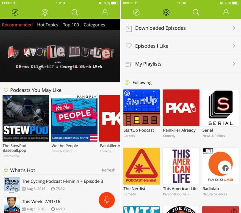 The app itself is basic. There’s nothing to write home about. Where Stitcher shines are the over the top features. You start out with a personalized page where you’ll find recommendations for podcasts and episodes you might find interesting. If you’re paying for Stitcher Premium ($4.99/month), you’ll get an ad-free experience, bonus content and exclusive Stitcher Originals shows.