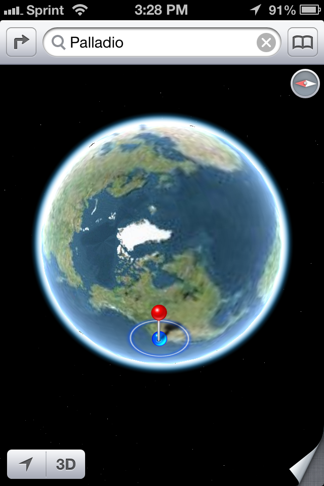 You can now zoom out in the Maps app like Google Earth. Thanks Cesar for the tip!