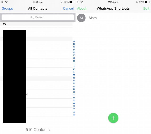 - You should now see shortcuts for all the contacts you had selected in the previous step. Tapping on any shortcut will open WhatsApp and take you to their conversation with you.